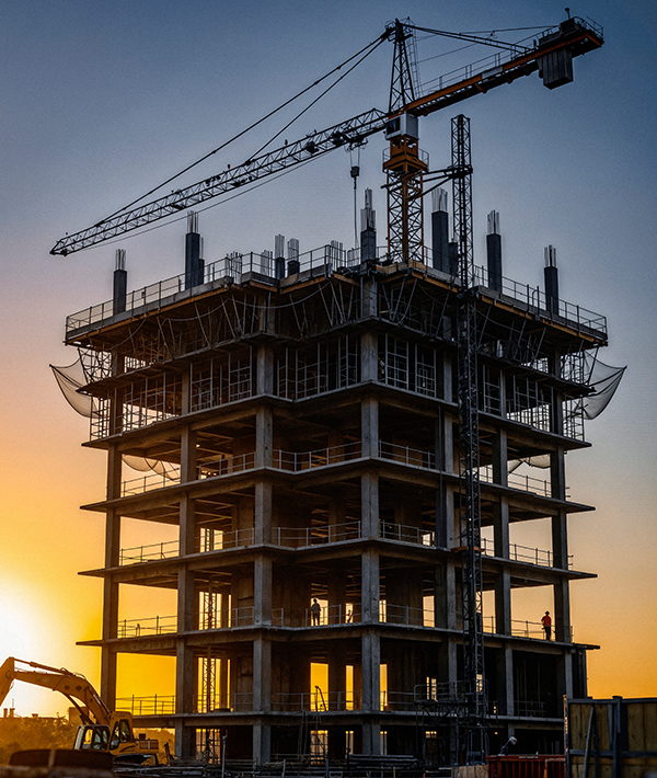 إنشاء المباني السكنية والتجارية من مرحلة العظم حتى التشطيب الكامل.
